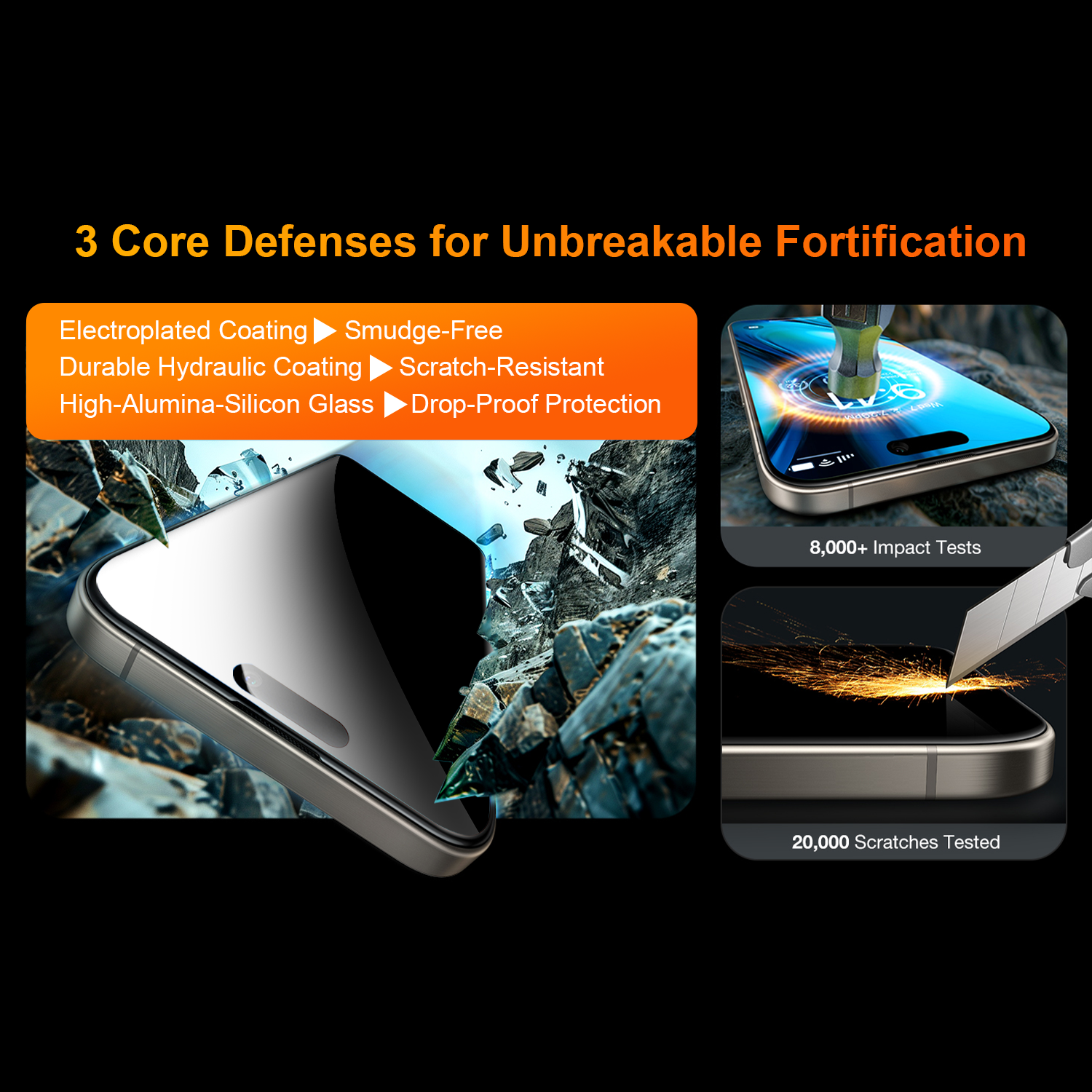 Our mobile phone films use high-toughness (PET) or (TPU) as the base material. PET material has excellent rigidity and tensile strength. The edge airbag protection can effectively disperse the impact force when the mobile phone falls, preventing the screen from breaking due to excessive local force.